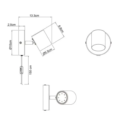 Dimensioni: Diametro: 100 mm; Altezza: 100 mm – compatto e adatto a diversi tipi di soffitto.