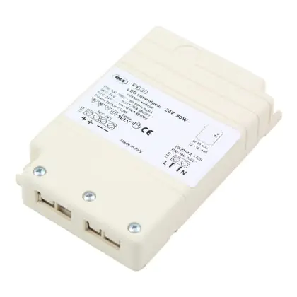 Il LED Driver 24V DC 30W della é un controller che permette il funzionamento delle strisce LED presenti sul nostro catalogo. E' utilizzabile con tutti i prodotti della gamma e puó ricevere fino ad un massimo di 30W.