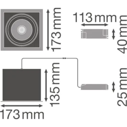 Descrizione Ledvance Faretti LED Piazza Inclinabile Nero-Bianca 30W 2700lm 36D - 830 Luce Calda | Ritaglio 164mm