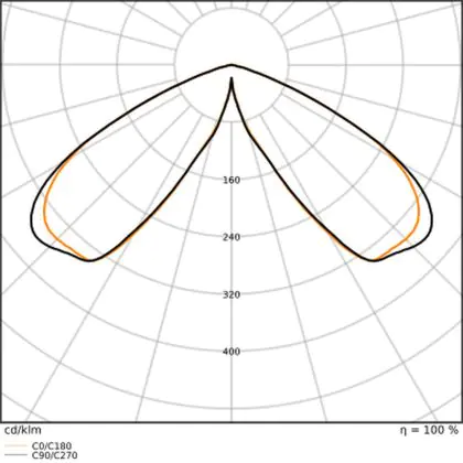 Questa lampada LED viene spesso usata per illuminare in modo ottimale aree piuttosto grandi. A questo scopo, serve un apparecchio che abbia alto rendimento luminoso in quanto maggiore è il rendimento luminoso, più grande è la superficie illuminata. Questo apparecchio emette una luce con potenza luminosa di 4800 lm e il rapporto lumen/watt di efficienza luminosa è di lm/W. Questo significa che l'apparecchio consuma poca energia per la quantità di luce che genera!