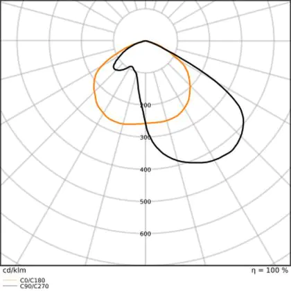 L'alloggiamento impermeabile di questa sorgente luminosa non è l'unica ragione per cui è perfetta per l'uso all'aperto. Infatti bisogna considerare anche la distribuzione della luce di questa lampada stradale, che ha apertura del fascio luminoso di 60x120° ed emette luce di colore .