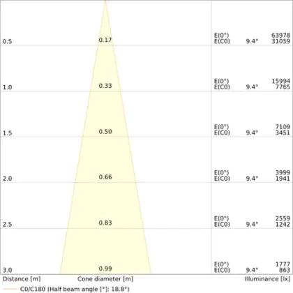 Angolo del Fascio luminoso (gradi) | 18, 50 |