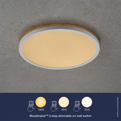 Oja è una plafoniera ultrapiatta di Nordlux. Ha un'applicazione universale, con LED integrato e funzionalità Moodmaker™. Ciò consente di dimmerare il prodotto in 3 fasi senza un dimmer, semplicemente con un normale interruttore a parete. Oja ha una durata di 25.000 ore e una piacevole luce bianca calda a 2700K.
