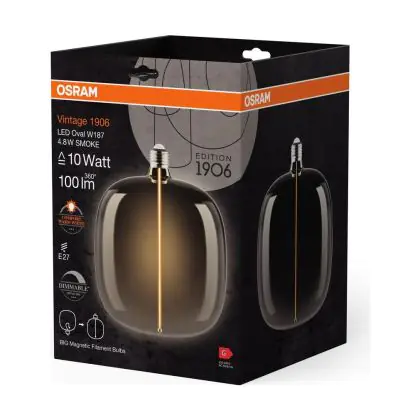 La Osram Vintage 1906 LED E27 Special Filamento Smoke Tall 4.8W 100lm - 818 Bianco Molto Caldo | Dimmerabile - Sostitutiva 15W è la perfetta sostituzione per la tua lampada convenzionale 15W con attacco E27 grazie alla sua tecnologia LED. Passare a LED ti offrirà tanti vantaggi!
