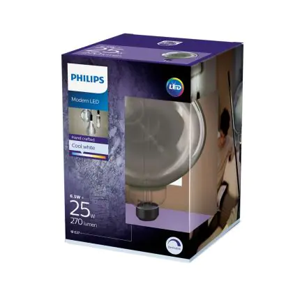 La Philips Classic LED Globe E27 200mm Filamento Smoke 6.5W 200lm - 818 Bianco Molto Caldo | Dimmerabile - Sostitutiva 20W è la perfetta sostituzione per la tua lampada convenzionale 20W con attacco E27 grazie alla sua tecnologia LED. Passare a LED ti offrirà tanti vantaggi!